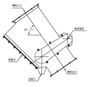 工作原理:串接于傾角45-75度的物料輸送管道中,當物料流經該除鐵器時,其中的鐵磁性物質被吸附到管道除鐵器的不銹鋼管壁上,隨永磁體的移動而逐漸向出鐵口方向滑動,實現與物料分離。在出鐵口處,因永磁體沿循環運動方向移開,鐵磁性物質失去磁力吸引,在重力的作用下從出鐵口排出,實現物料的自動除鐵。